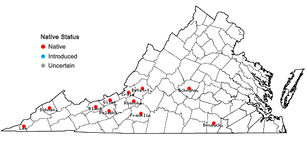 - On gravelly soil and sandstone on ridge by dam, Carvins Cove, Roanoke County; dry sandy roadside and forest trail, Breaks Interstate Park, Dickenson County (Biodiversity occurrence data published by DUKE. Accessed through Consortium of North American Bryophyte Herbaria (CNABH) Data Portal, http//:bryophyteportal.org/portal/index.php, 2015-02-10). Frequent, often abundant on sandstone pavements at and near the crests of Tinker, Sinking Creek, and Walker Mtns. Also known from a shale barren in Botetourt indicating these habitats should be studied more broadly.