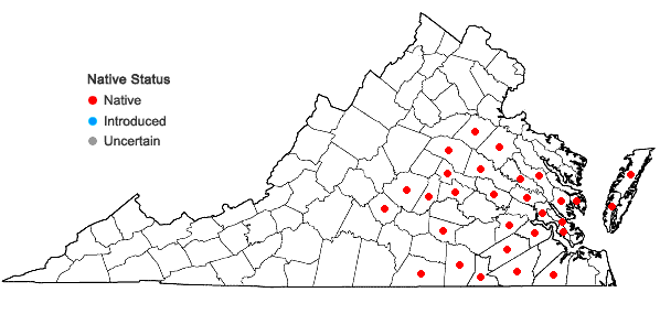 - The full range of habitats is somewhat uncertain, but likely includes floodplain forests, alluvial swamps, bogs, fens, seeps, wet flatwoods, depression ponds, clearings, old fields, and roadsides. Based on confirmed specimens, this var. appears to be frequent in the Coastal Plain of southeastern and east-central Virginia, where it reportedly reaches its northeastern range limit. However, recent collections from several central Virginia counties indicate that it ranges sporadically well into the Piedmont.