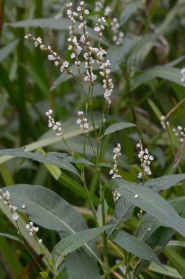 - Closely related to, and often synonymized under or considered a variety of, Persicaria punctata (Ell.) Small. However, it is given species status in FNA, and differs dramatically from typical P. punctata in robustness, with a stature more like P. densiflora. In addition, it has more or less uninterrupted inflorescences, with ocreolae usually overlapping and eciliate (sometimes with hairs to 1 mm), and wider (to 4.5 cm) leaf blades. Careful field and herbarium studies are needed to determine the status of this species in Virginia, since it was subsumed in P. punctata in earlier, hard-copy editions of the Atlas. It ranges over much of the Atlantic Coastal Plain from NS to FLA, and south into Tropical America.