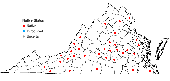 Locations ofOrthotrichum ohioense Sullivant & Lesquereux in Virginia
