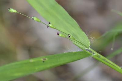 This species was recently described by LeBlond, Townsend and Ludwig in J. Bot. Res. Inst. Texas 14(2): 189-198 (2020). It was originally known from a single site in Halifax County, where numerous rare species occur in hardpan woodlands and clearings over mafic rock; another site, however, has been recently found in Appomattox County. This species shares the large fruit size and strongly retrorsely bearded nodes of D. boscii and D. ravenellii but has much narrower leaf proportions; in some respects, it is quite similar to Dichanthelium appalachiense. Given that plants occur characteristically in small numbers or as scattered individuals, the possibility that they are hybrids needs further investigation.
