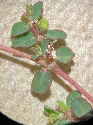 - Reported new to Virginia in November 2024 by Nelson DeBarros. Additional records posted to iNaturalist suggest the species may be more widespread and overlooked, no doubt because of its similarity to the ubiquitous Euphorbia maculata. Euphorba serpens is native to the south-central and lower southeastern U.S., Mexico, West Indies, Bahamas, Central America, and South America. It is widely introduced elsewhere in the world, including the eastern U.S., Canada, Europe, Asia, Africa, and Australia. According to John Hayden, a good character that does not appear in most keys is the species' frequent rooting at the nodes, a habitat exhibited by very few species in section Anisophyllum (former Chamaesyce). Even if adventitious roots are not present, one would likely see at least swellings of root primordia on the stem if a plant is turned upside down.